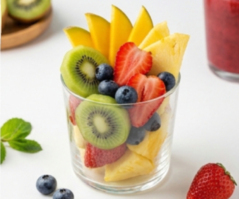 Представьте стакан, наполненный сочными красками лета! Фруктовая корзинка — это не просто нарезка, а настоящий фейерверк вкусов: сладкий арбуз, ароматная дыня, нежная клубника, бархатистый банан, сочный нектарин, солнечный персик, хрустящее яблоко и душистая груша в одном стакане.